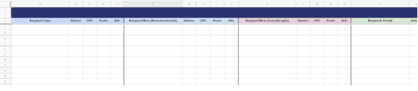 Chegamos na última etapa. Com uma lista de palavras prontas, depois de filtrar aquelas que tinham zero volume de pesquisa e manter apenas as palavras que são relevantes ao seu negócio, iremos distribuir todas elas no Funil.