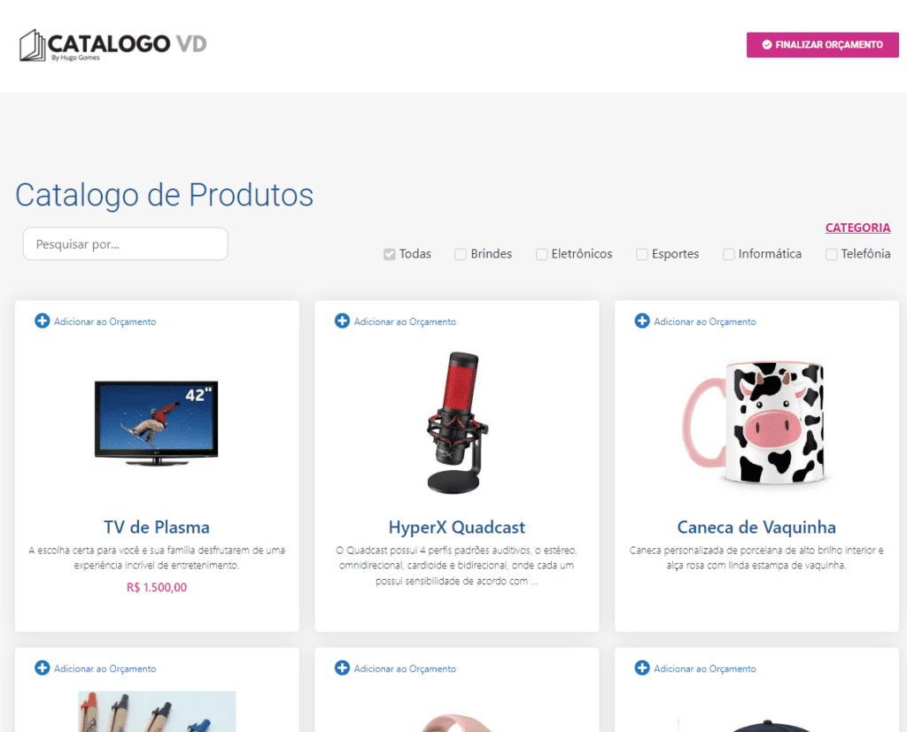 OBS: Não cadastramos os produtos, valor de configuração é é especifico para personalização da logo do cliente e cores padrões da marca.