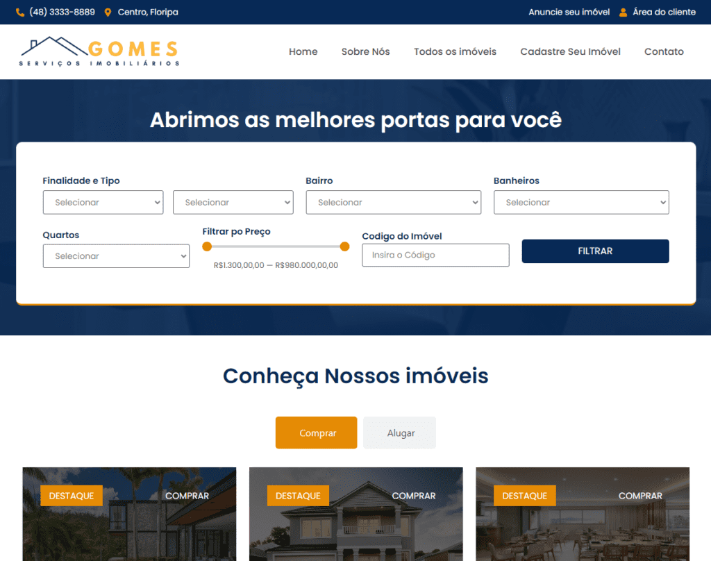 Template voltado para empresas de imoveis em geral, com filtro avançado de busca.
