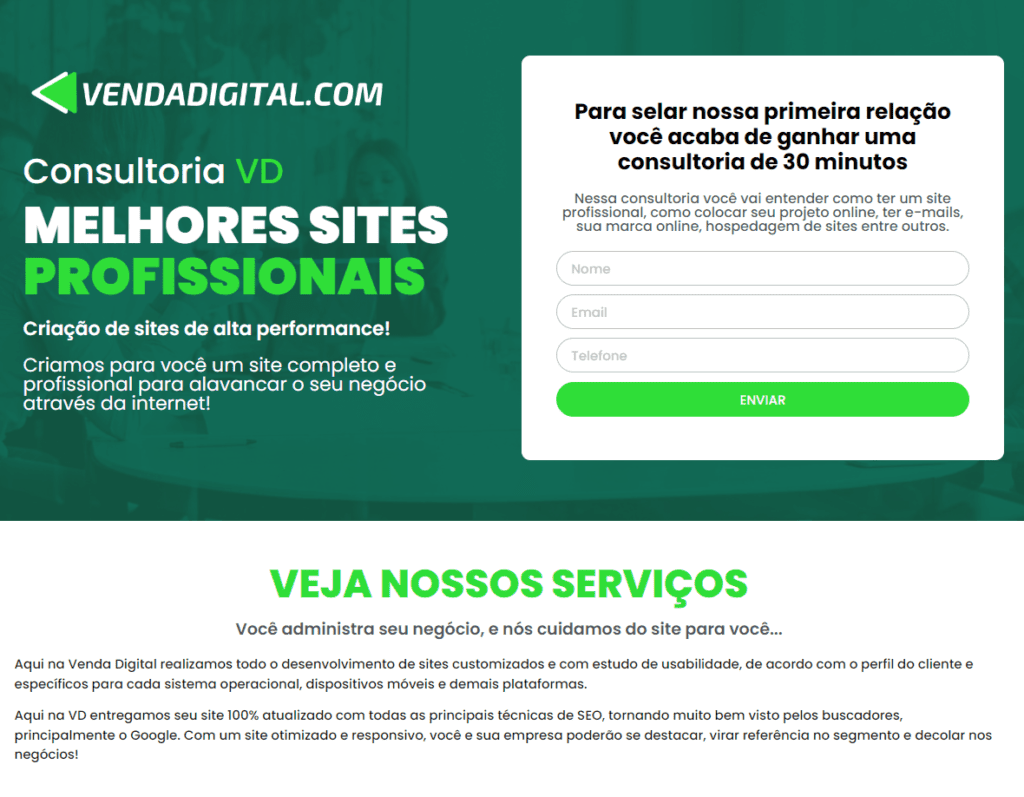 Aqui na Venda Digital realizamos todo o desenvolvimento de sites customizados e com estudo de usabilidade, de acordo com o perfil do cliente e específicos para cada sistema operacional, dispositivos móveis e demais plataformas.Aqui na VD entregamos seu site 100% atualizado com todas as principais técnicas de SEO, tornando muito bem visto pelos buscadores, principalmente o Google.com um site otimizado e responsivo, você e sua empresa poderão se destacar, virar referência no segmento e decolar nos negócios!