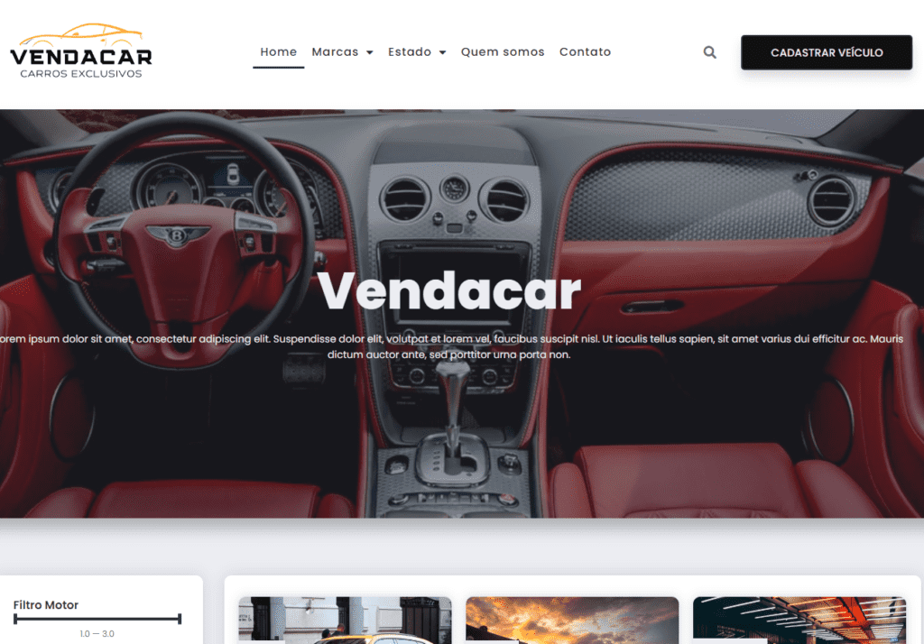 Template para revenda de veículos, site com filtro avançada de busca por preços, categoria, ano do carro, local entre outras informações.